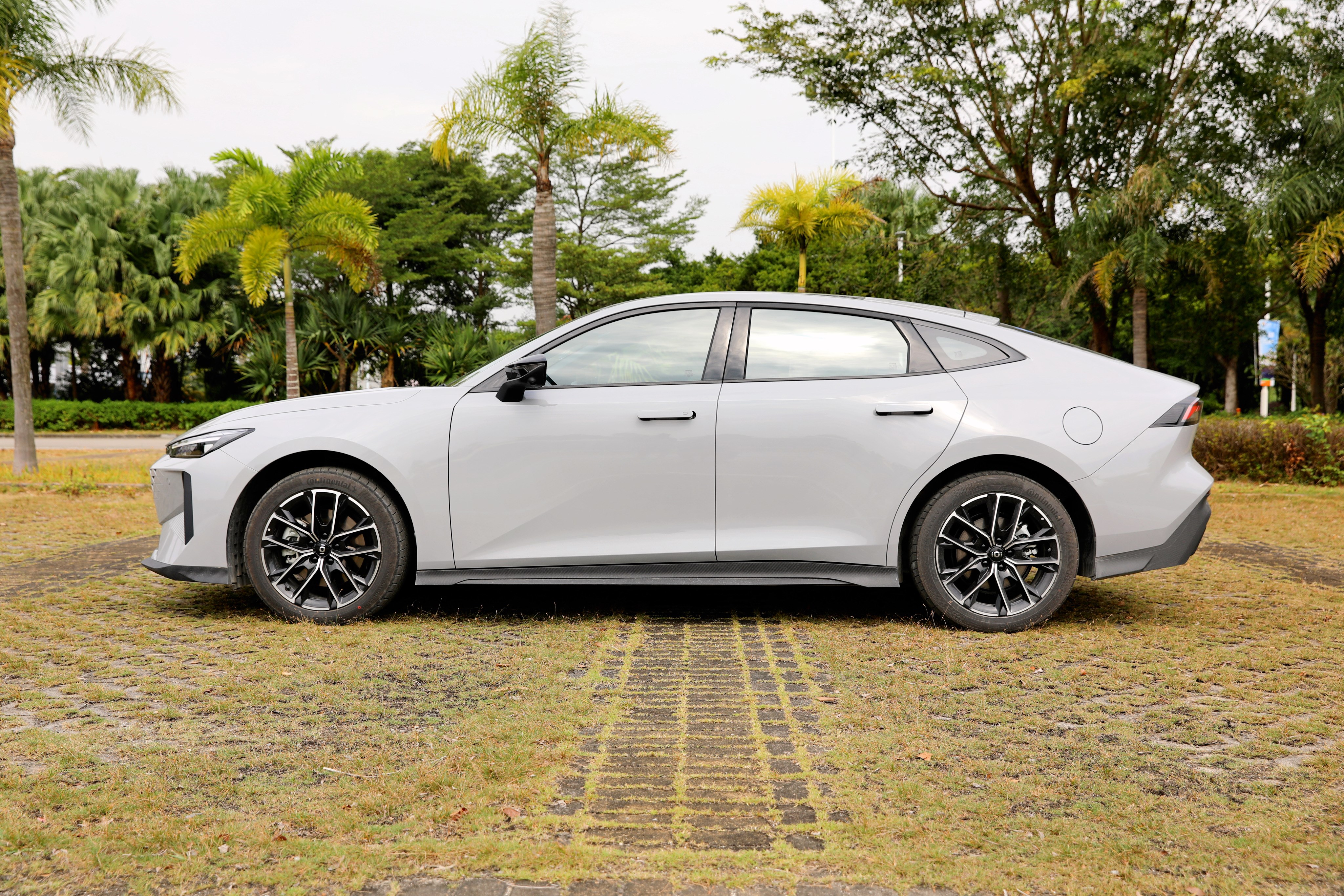 啟源A06的側面造型展現(xiàn)出優(yōu)雅的溜背設計,新車輪高比0.47,輪高幾乎占到車高的一半,低趴的車身姿態(tài)彰顯運動轎跑該有的氣質,此外,新車還配有隱藏式門把手與18英寸多輻式輪圈造型。尺寸上,啟源A06長寬高分別是4720/1838/1435毫米,軸距達到2750毫米。此外,啟源A06還配備馬牌MC6 高性能運動輪胎,增添車輛行駛中的抓地性。