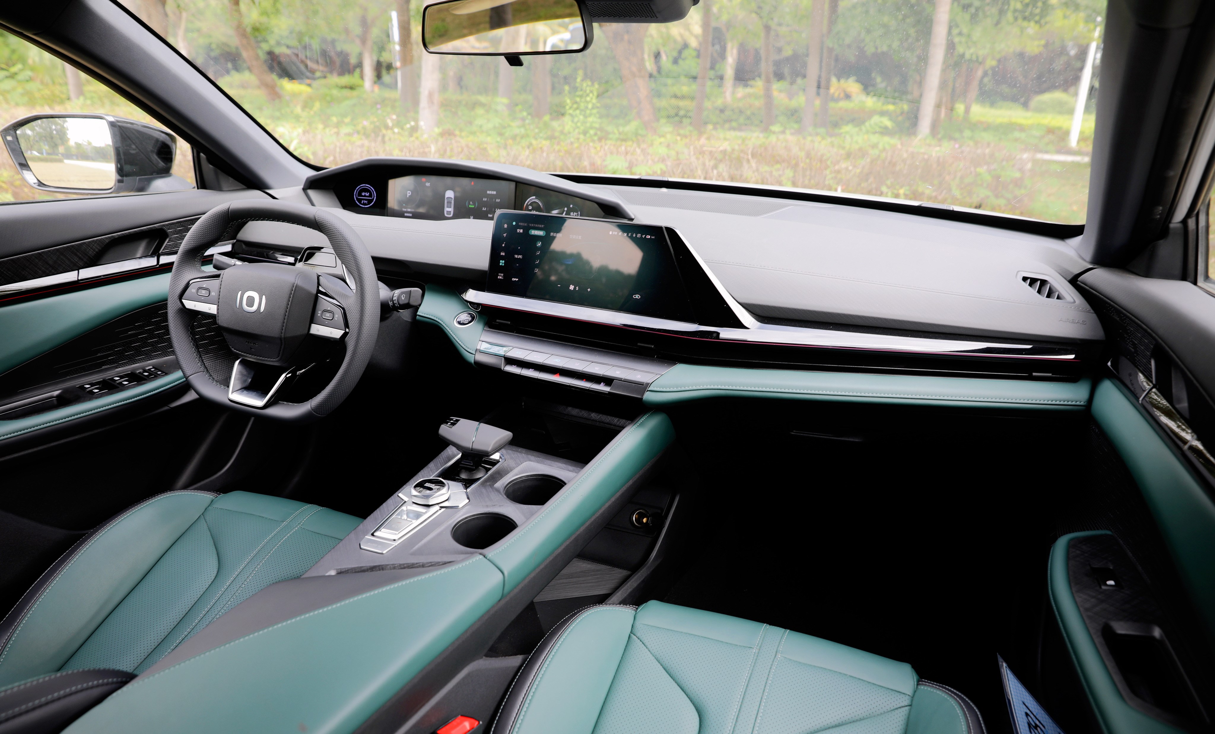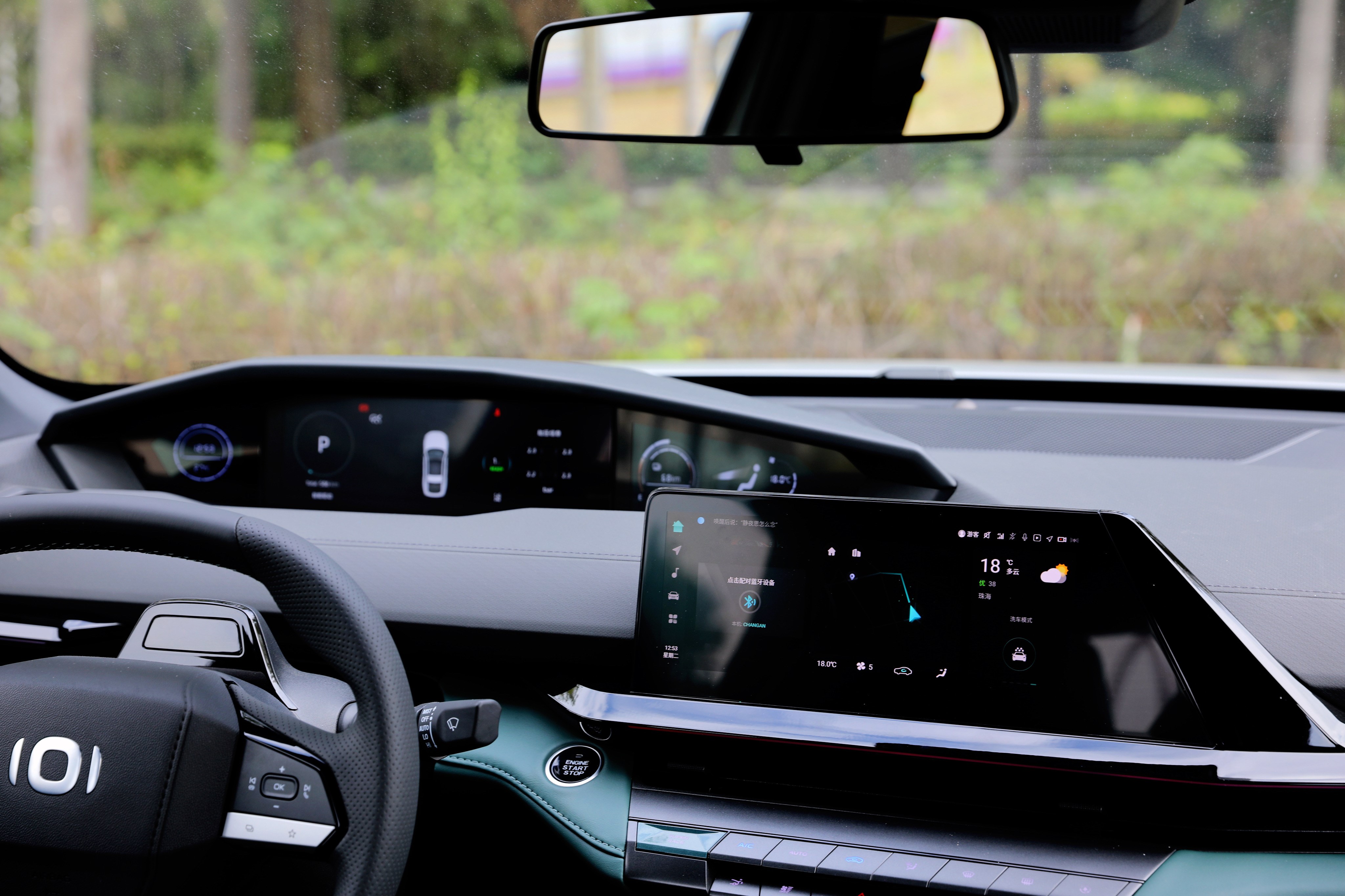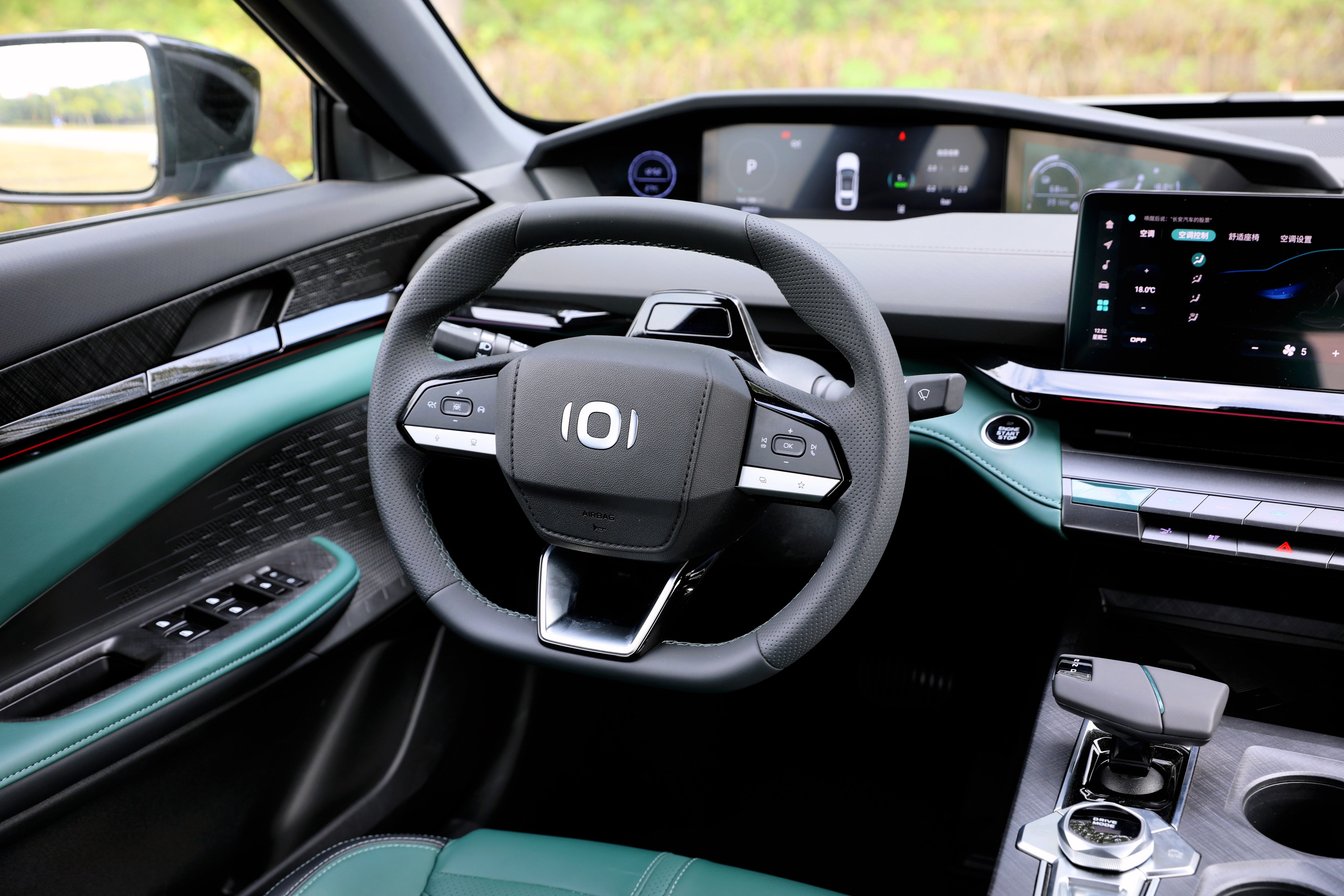 進入車內,長安啟源A06座艙風格很獨特,富有層次感的造型讓你第一眼會感覺很復雜,但是仔細品味一番后,它特殊的風格可以說是別有一番風味。啟源A06提供流沙白和林蹤綠兩種面料配色,個人更喜歡林蹤綠的配色方案,更能體現(xiàn)出動感、時尚的一面。