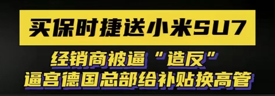 也就有了開頭,買保時捷Taycan送“小米SU7”,經銷商被逼“造反”等消息。造反:部分經銷商更是停止了進車。