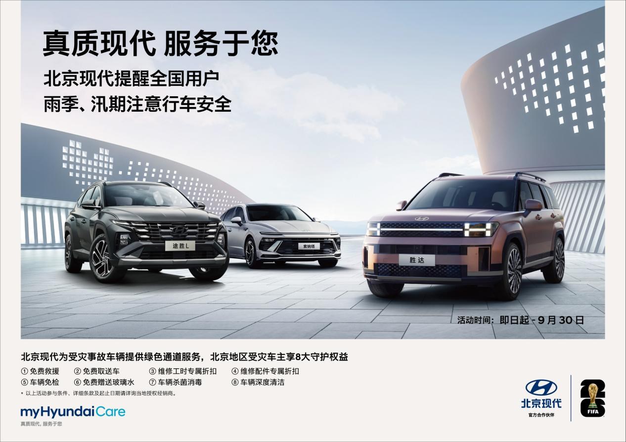北京現(xiàn)代特別提醒全國用戶,在雨季、汛期期間要注意行車安全。同時,在保障自身安全的情況下,對需要幫助的車主朋友提供支援,呼吁大家在困難面前團(tuán)結(jié)互助,共克時艱。