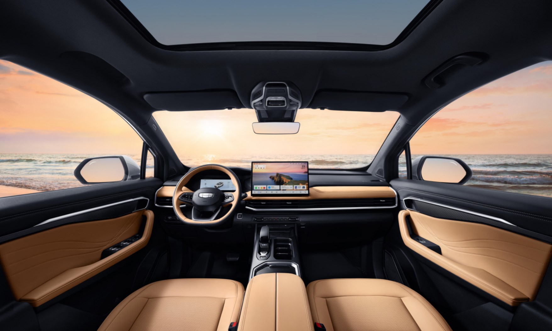新車(chē)尾部造型方正,使用了貫穿式的尾燈,下方則刻印著吉利汽車(chē)的英文字母,進(jìn)一步加強(qiáng)辨識(shí)度,底部雙邊共兩出的排氣布局還加上了濃郁的鍍鉻裝飾,進(jìn)一步加強(qiáng)時(shí)尚氣息。